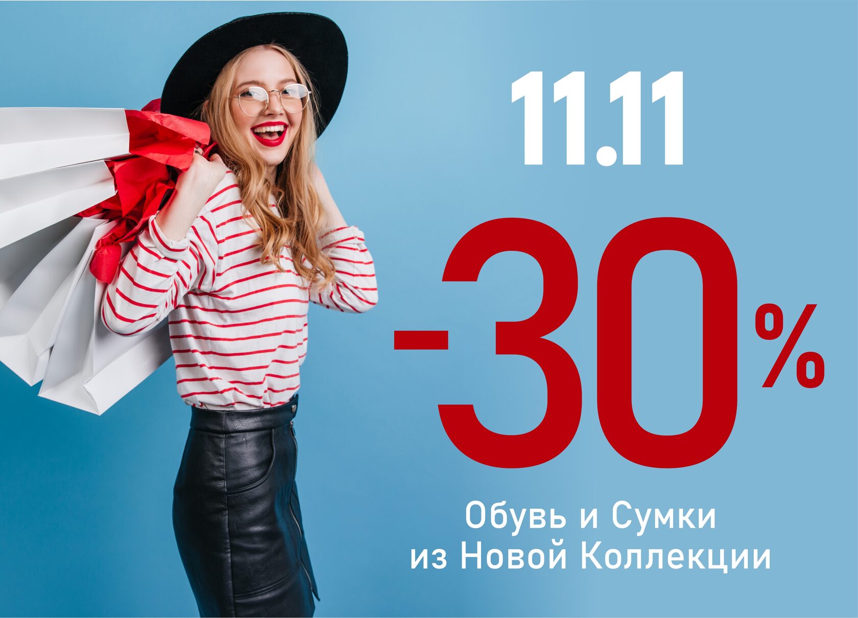 Только 11 ноября во всех магазинах сети действует невероятная акция: СКИДКА 30% на ВСЮ НОВУЮ КОЛЛЕКЦИЮ обуви и сумок!