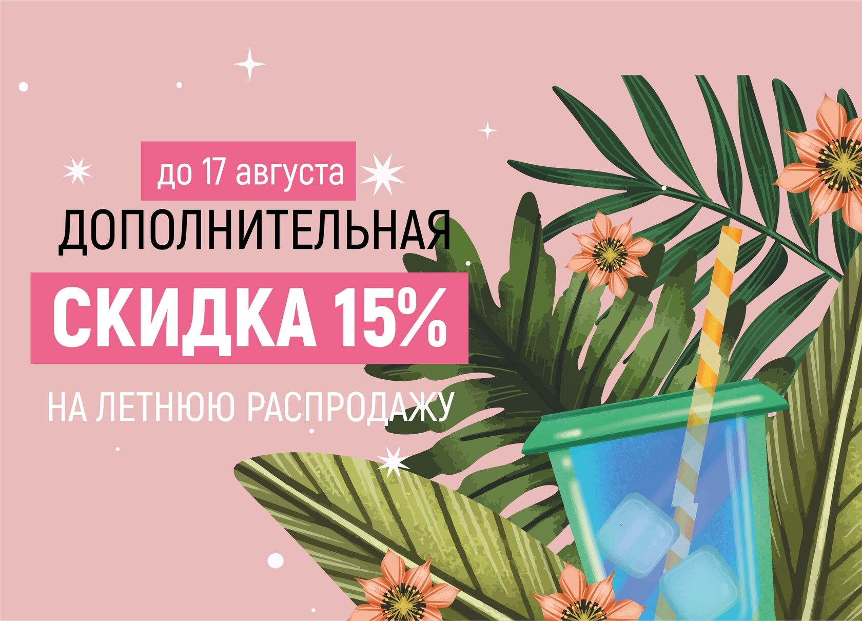 До 17 АВГУСТА в Магазинах Модного города действует ДОПОЛНИТЕЛЬНАЯ СКИДКА 15% на распродажу летней коллекции